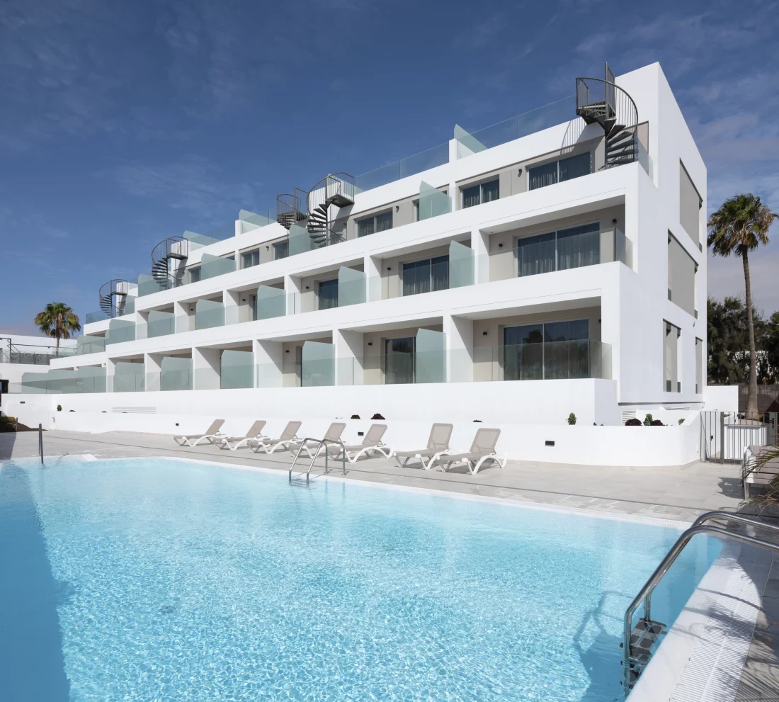 An adult area is proposed in an elevated site of ​​the hotel establishment in the south of the island of Tenerife, which provides interesting views of the horizon and to the neighboring island of La Gomera.   The existing unevenness makes possible the development of an infinity