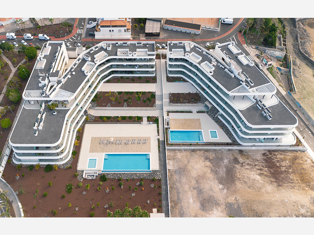 Todas las viviendas disponen de amplias terrazas privadas e interesantes vistas hacia el horizonte y la vecina isla de La Gomera, así como con vistas hacia los jardines interiores y piscinas de las que se compone el residencial.